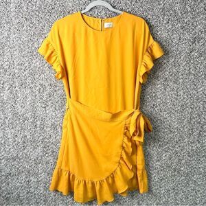 Excellent used Condition Women’s Aritzia Wilfred Ninette Yellow Short Sleeve Ruffle Wrap Dress in Size Small