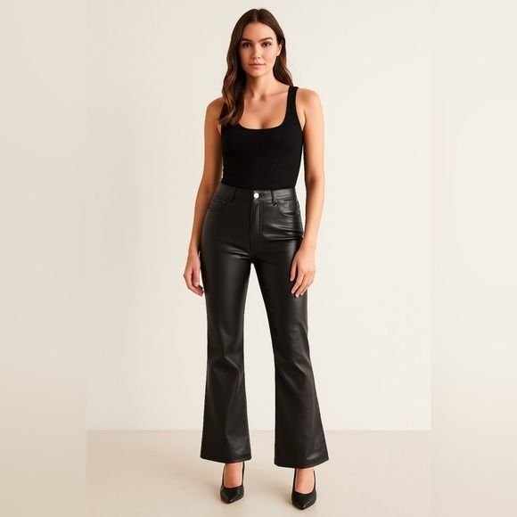 Chic and sleek Wilfred faux leather pants in classic black. High-waisted flare style that flatters every silhouette. Soft lining for comfort and effortless movement.