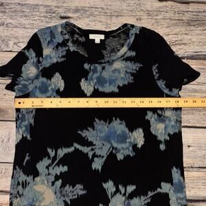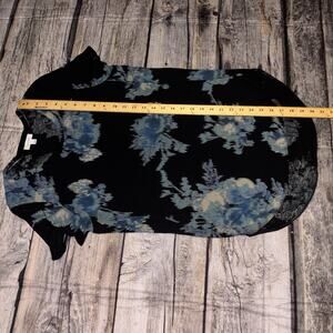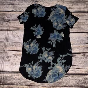 Wilfred Floral Print Black Blue Tunic Soft Rayon Stretch Top Womens Size Small