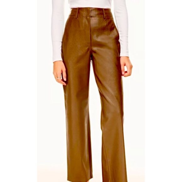 Wilfred Free Aritzia High-Waisted Brown Faux Leather Straight-Leg Pants Womens 4
