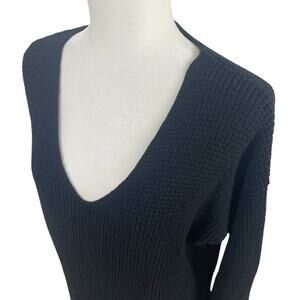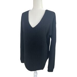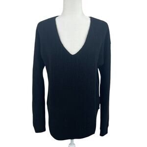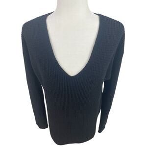 100% Merino wool, pullover, v-neck, long sleeves. Black. Size medium. Item is oversized.