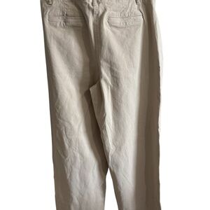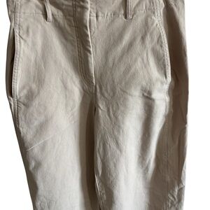 Stylish beige chinos by Wilfred. Perfect for versatile wear. Comfortable and chic. Stretch. High waist, wide leg, front and back pockets.
