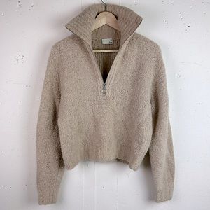 Wilfred Free Gwyneth Half Zip Neutral Cozy Alpaca Blend Sweater. Size Small. Beige Color.
