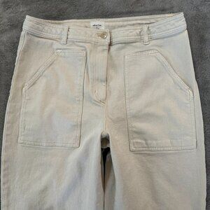 Wilfred Free High Rise Patch Pocket Wide Leg Jeans Cream 10 Women's