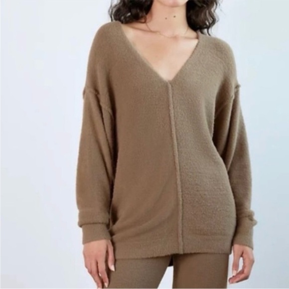 Wilfred Free Hush Knit Shitake / Shiitake Brown V Neck Super Soft Slouchy Sweater