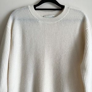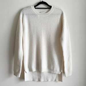 Wilfred Free Isabelli Waffle Knit Crew Neck Sweater High Low Hem Women XXS Ivory