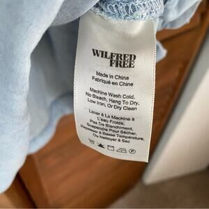 Wilfred Free spaghetti strap lyocell dress, size medium. Pockets at hips. Staining on the front, see photos. Creasing at the hem.