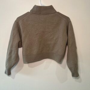 Stylish turtleneck sweater. Soft and warm fabric. Perfect for layering. This is a wool sweater that has struck. I usually wear a size small and I wear this as a cropped sweater now.