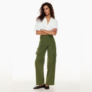 These are high-waisted cargo pants with a wide leg. They're cut from soft-brushed reverse sateen fabric with a comfortable degree of stretch
