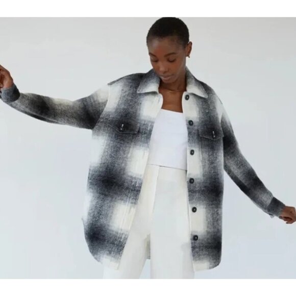 Wilfred Free Black/White Plaid Fleece Ganna Shirt Jacket Size S