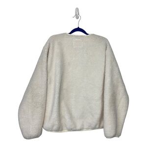 "The solution to "I'm cold" This is a relaxed liner jacket with snap closures, inseam pockets and dropped shoulders. It's designed to be worn on its own or as a toasty extra layer under jackets. It’s made from plush, shaggy faux shearling fleece."
