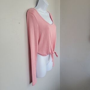 Wilfred Free Women's Medium Baby Pink Long Sleeve Shirt Knot Front Soft Crop