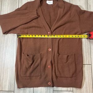 Wilfred Free Women's Medium Cardigan Brown Buttoned Pockets Sweater Soft Comfort