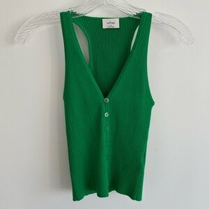 Vibrant green ribbed tank top. Sleeveless with button front. Perfect for layering.
