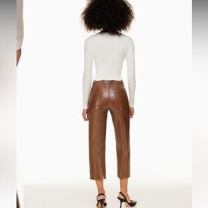 Keywords: Wilfred Melina pants, faux leather trousers, cropped straight leg pants, cognac brown vegan leather, Aritzia style, workwear chic, date-night outfit, fall capsule wardrobe