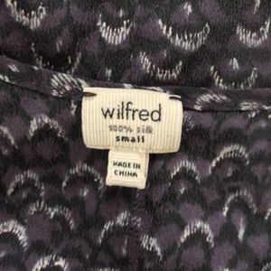 Wilfred. Size small. Purple and gray minou Printed Silk camisole. Adjustable straps. Lightweight material. Excellent used condition with no signs of wear. Bust: 16 inches. Length: 23.5 inches. ALL MEASUREMENTS ARE TAKEN WITH ITEM LAYING FLAT. 100% Silk. ||3589||