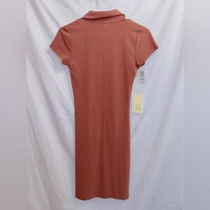 Wilfred NWT Short Sleeve Button Front Ruched Visit Shirt Dress in Mocha Sorbet