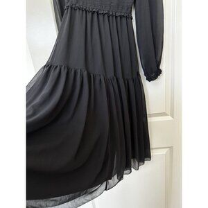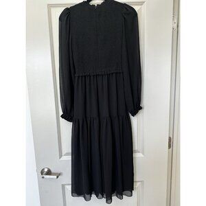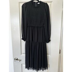 Wilfred Rosalyn Dress Smocked Sheer Long Sleeves Tiered Midi Black Size XS. Excellent condition, no flaws!
