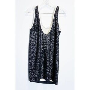 Wilfred Silk Black Mix Sequin mini dress with white frayed detailing SZXS