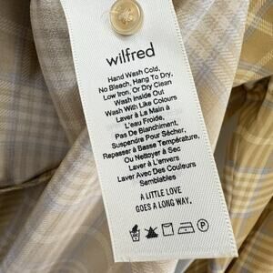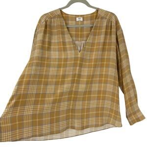 Wilfred Silk V Neck Popover Beige Plaid Long Sleeves Women size Medium