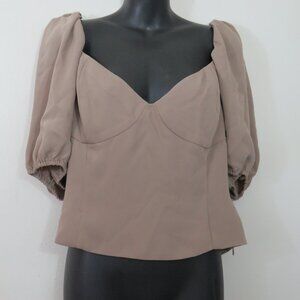 Wilfred Size 1X Novella Sweetheart Blouse Top Grey Taupe Short Sleeve NEW