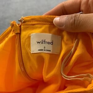 WILFRED SKIRT WOMENS 0 SAFFRON LINEN BLEND ARITZIA SLIT DRAPED FRONT FULLY LINED