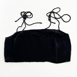 Wilfred Smocked Crop Top Womens Large Tie Shoulder Straps Black Summer