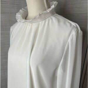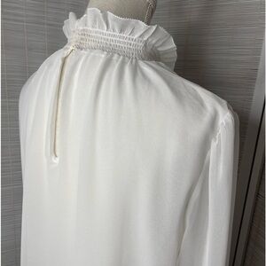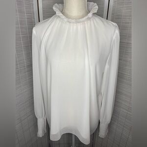 Wilfred Valencia Blouse White Size S Ruffle Neck and Cuffs Keyhole Back