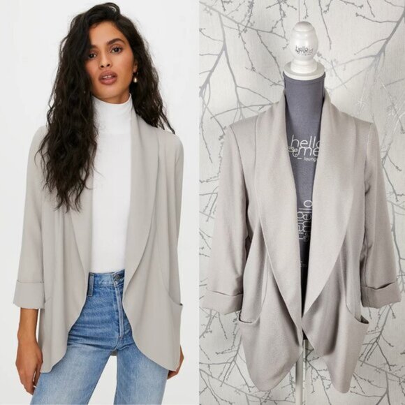 Wilfred Warm Gray Crepe Drape Open Front Chevalier Blazer