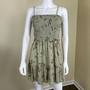 Wilfred Womens Size M Green Tempest Sleeveless Smocked Tiered Chiffon Mini Dress
