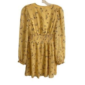 Wilfred Yellow Floral Long Sleeve Chiffon Babydoll Dress Smocked Waist V-neck XS