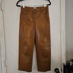 Wilfred from Aritzia | Melina Brown Leather Pants Size 4