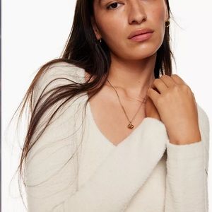 A fully fashioned sweater in silver birch color, size XS, with a sweetheart neckline. It’s knit with Wilfred Free’s Hush Knit — plush, cuddly soft Italian chenille yarn. This version is constructed with a Jersey stitch for a soft drape and a smooth, flat feel. Sooooo soft and cozy! Worn 3-4 times—no flaws. Reasonable offers welcome!