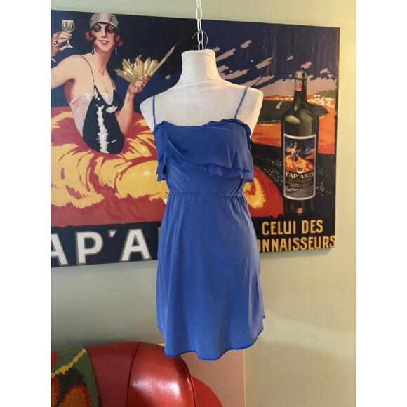 Great condition Wilfred Aritzia blue silk slip dress. Size XS small mark on ruffle top (see close up)