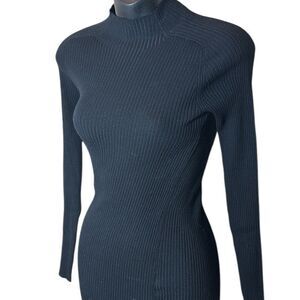 Wilfred women’s xxs alchemy midi dress black ribbed mock neck high slit sweater