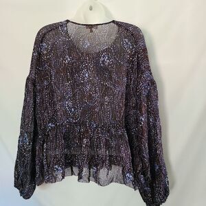 Overall Excellent gently preowned condition beautiful multi shades of blue sheer long sleeve blouse