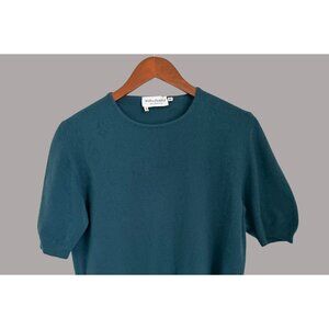 Wilkes Bashford Womens 100% Cashmere Teal Short Sleeve Sweater Size 44