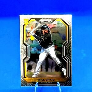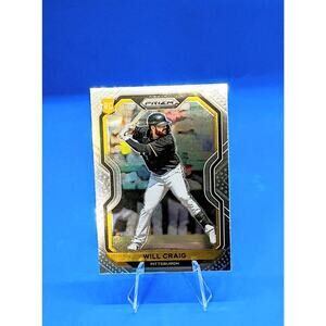 The product is a 2021 Panini Prizm baseball trading card featuring Will Craig of the Pittsburgh Pirates. This rookie card is made of card stock and metal, with an embossed design and belongs to the Prizm parallel variety. It is a collectible item for fans of Major League Baseball, specifically targeting those who follow the Pittsburgh Pirates team. This card is a valuable addition to any sports trading card collection for enthusiasts of the sport.