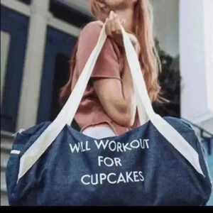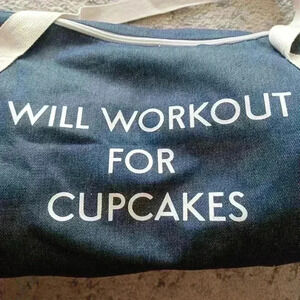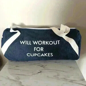NWOT super cute Denim duffle bag with canvas straps. Will work for cupcakes printed on the front. Has a side zipper. Very spacious inside. No holes or stains comes from a smoke-free and pet-free home