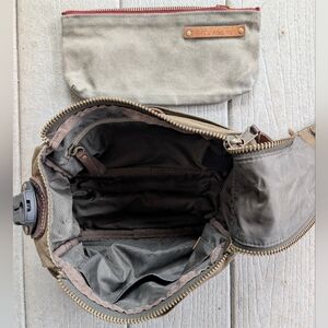 Great condition will bag, light stain on exterior. wallet on inside