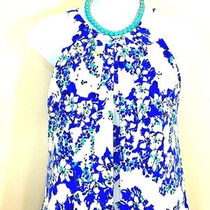 Willa Sundress swing floral print fully lined white blue yellow size M