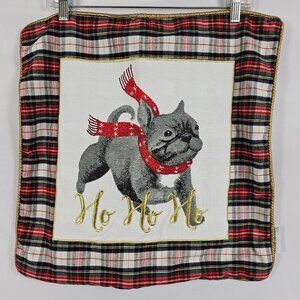 Willamstown 18" Gray Frenchie Bulldog Gold/Red Checker Plaid Pillow Sham Cover
