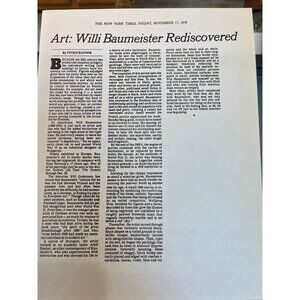 "Art: Willi Baumeister Rediscovered" By Vivien Raynor.