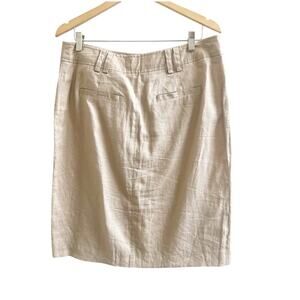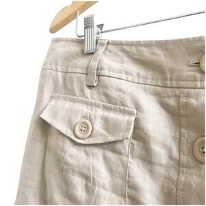 Willi Smith 100% Linen Button Front Skirt Tan 12 Knee Length Pockets Minimalist