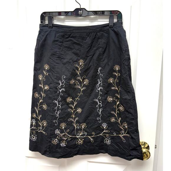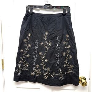Willi Smith Black A Line Skirt Tan Embroidery, Cotton, Lined, Women's Size 4