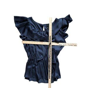 Willi Smith Blouse Womens Large Navy Blue Ruffle Flutter Sleeve Peplum Top