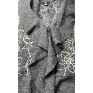 Willi Smith Cardigan Sweater Women X-Large Gray Boiled Wool Embroidered V Neck
