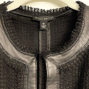 Willi Smith Cropped Tweed Jacket with faux leather arms and accents