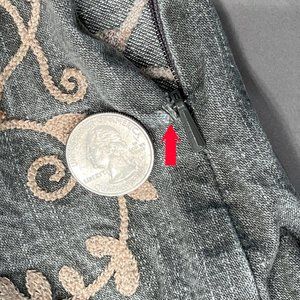 Excellent Gently Used condition, with flaw: *Distressed Place Where The Zipper Ends. *The Fabric Has Raised "White Bumps" Through Out. It Is Part Of The Fabric. See Last Three Photos.