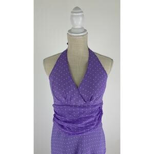 Willi Smith Halter Silk Dress Ruffled Waist Side Zip Polka Dot Purple Size 10